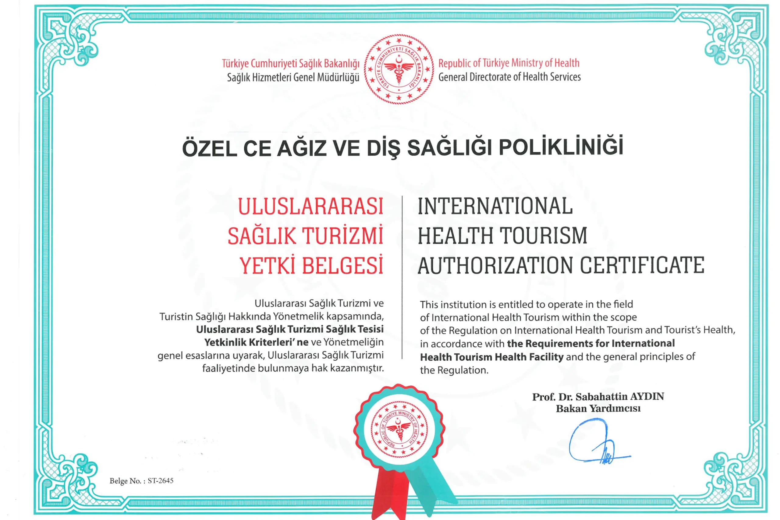 Certificato di Autorizzazione al Turismo Medico
